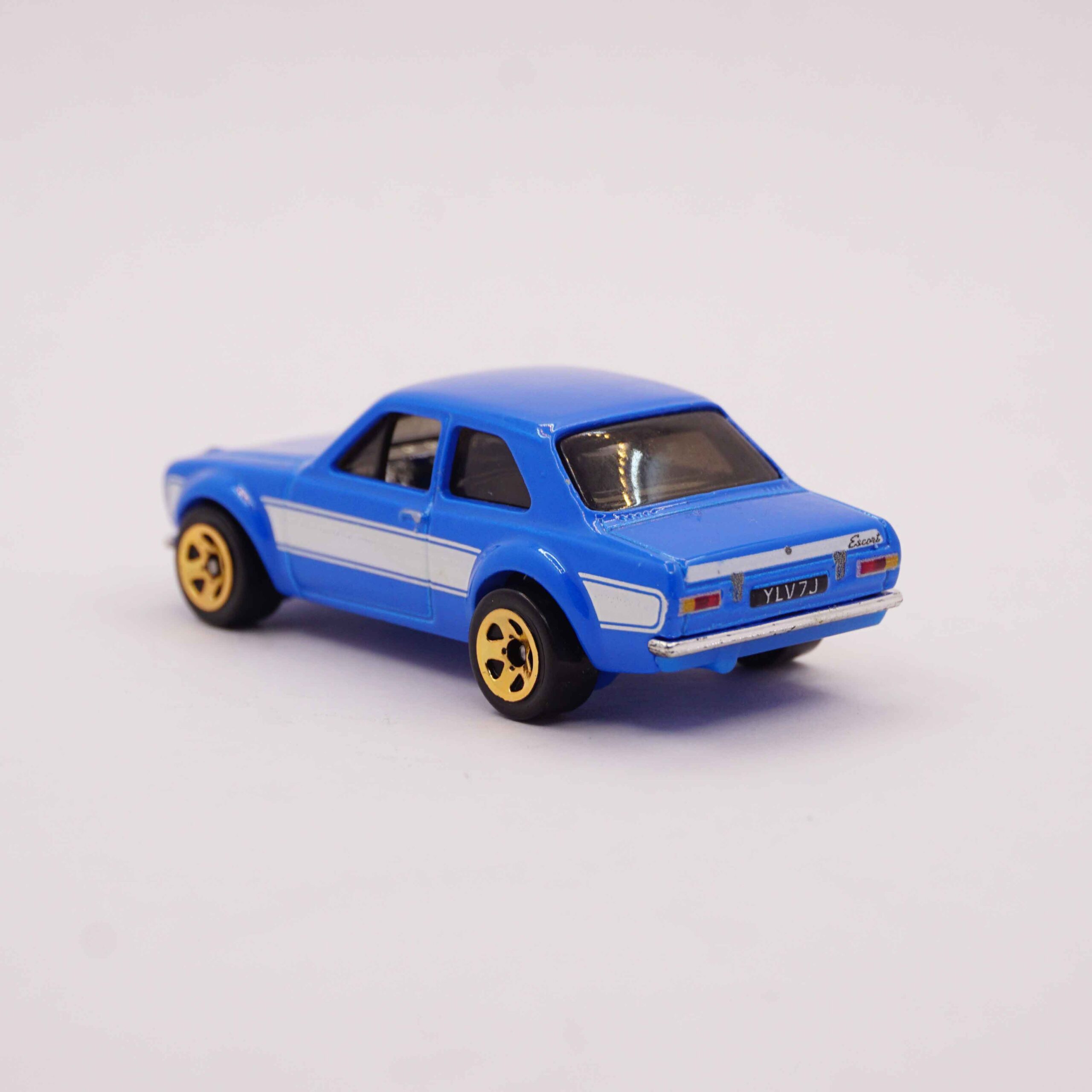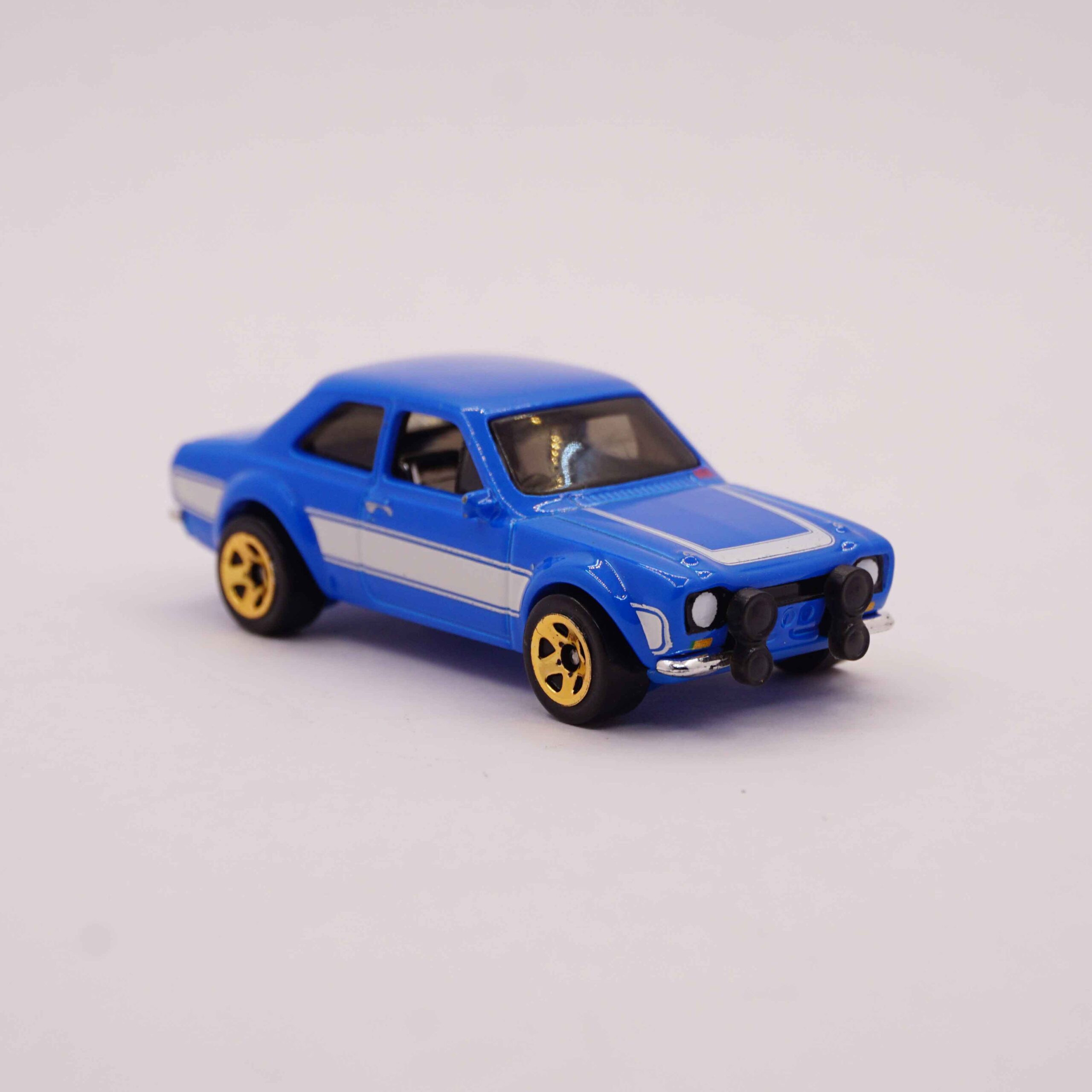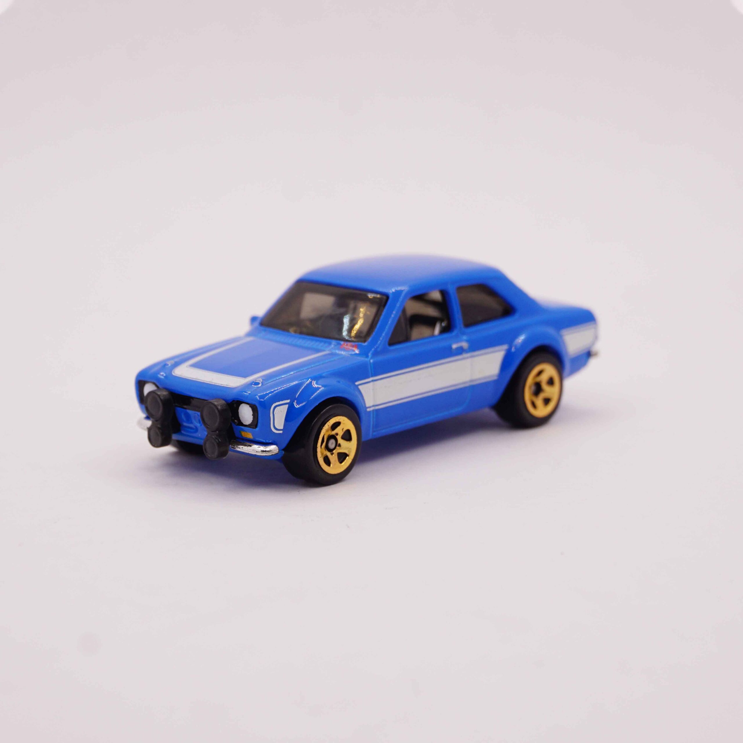 Hot Wheels Premium 1970 Ford Escort RS1600 in blue with white stripes and gold wheels, Fast and Furious collection die-cast car at RACEiN PARC’70 Ford Escort RS1600 – Fast & Furious (Imported Premium) – Blue