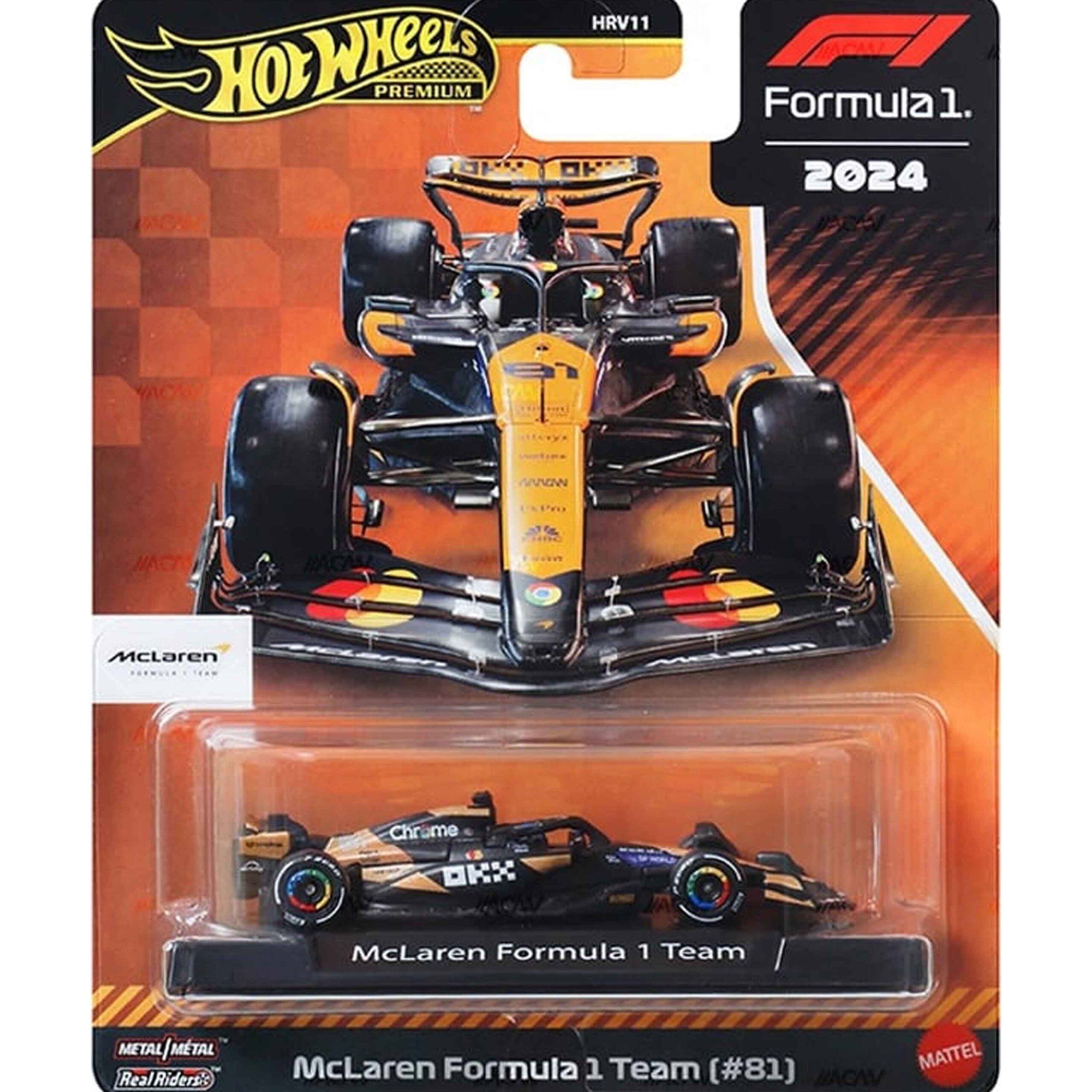 The McLaren Formula 1 Team (#81) Hot Wheels Car Culture Premium model represents the 2024 McLaren F1 challenger driven by Oscar Piastri. Finished in the team’s signature papaya orange and black livery, this model captures the aggressive aero design and precision engineering that define modern Formula 1 cars.